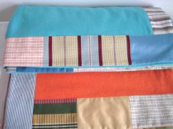 Die Längsseiten sind mit edlen Baumwollkaro-und Streifenstoffen eingefasst.
