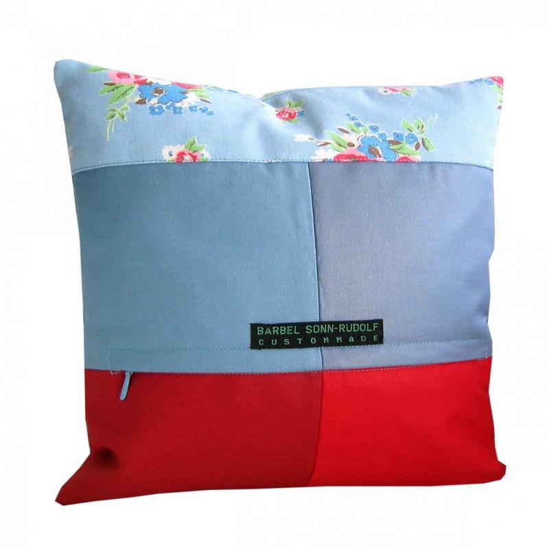 - Baumwoll-Chintz in Blau- und Rottönen