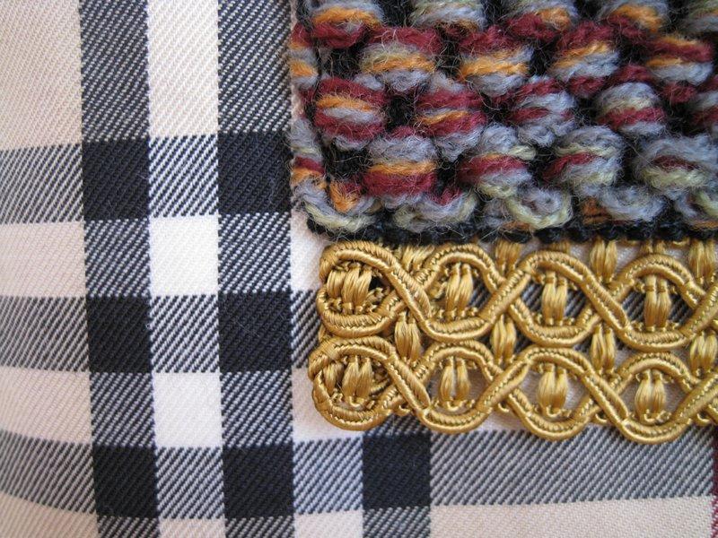 Die Vorderseite zieren verschiedene Woll-und Soutache - Borten .