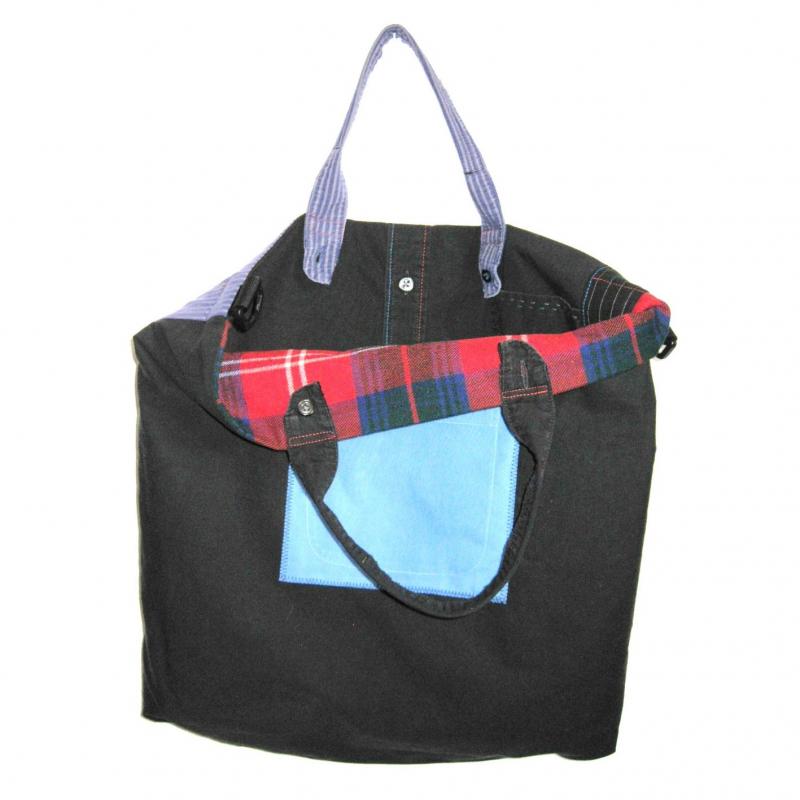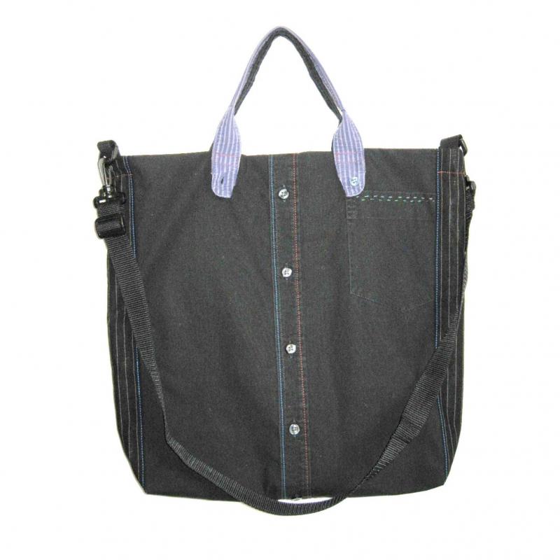 Die Rückseite der Tasche ist ein schwarzes Herrenhemd.