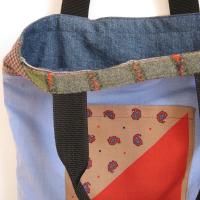 Ein recyceltes Herrenhemd wurde für die Innenseite verwendet, geschmückt mit witzigen Taschen.