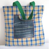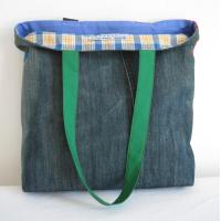Blaues Oberhemd trifft Anoraktasche – das karierte Jackenfutter wurde mit einer Jeanstasche kombiniert