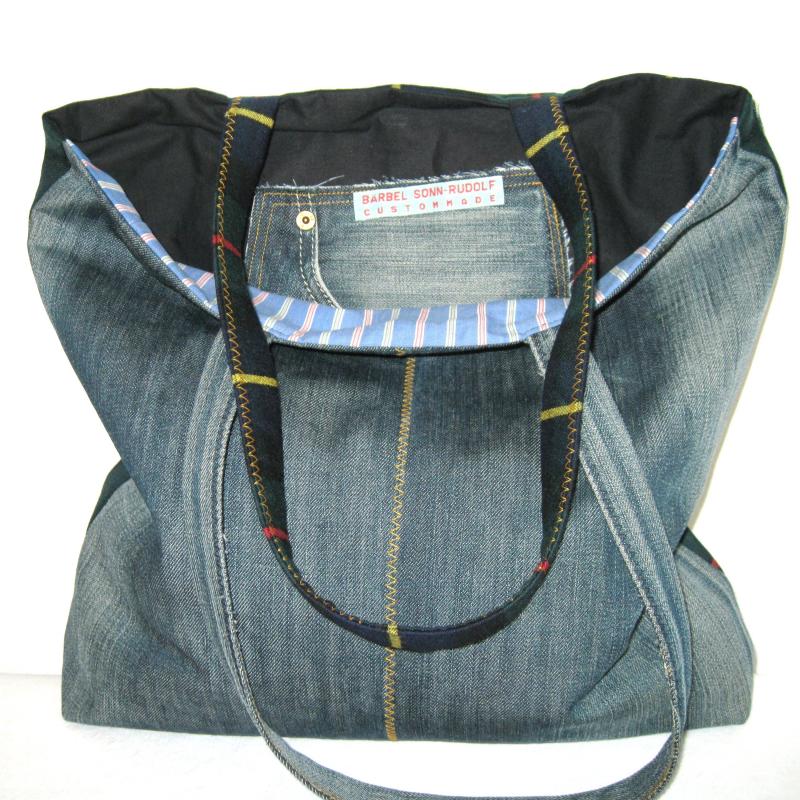 Die Henkel aus Schottenkaro und Jeansmaterial  sind 62 cm lg.